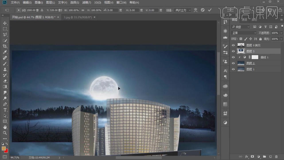 3、将选择好的天空素材载入参加景内,如图所示。调整他的大小,并利用【变形】东西,我晓得了我要评论本次课程评分:课程难易程度:您近期已提交过同样评论